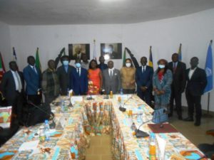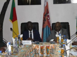 A leur arrivée, comme il est de coutume, le Secrétaire Exécutif du CERDOTOLA, Pr Charles Binam Bikoi, a eu des échanges avec ses illustres hôtes, dont M Denis Bohoussou, Directeur Général de l’Organisation Africaine de la Propriété Intellectuelle, OAPI, Mme Kalliopi Ango Ela de la Fondation Paul Ango Ela – FPAE, Pr Ambroise Kom, M. Ebe Evina Jean Claude, Directeur Général de PROMOTE.